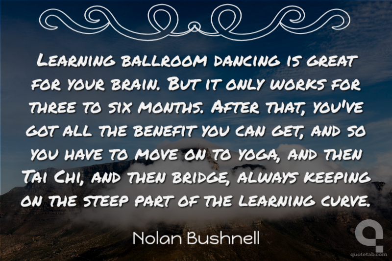 Learning ballroom dancing is great for your brain. But it only works for three to six months. After that, you've got all the benefit you can get, and so you have to move on to yoga, and then Tai Chi, and then bridge, always keeping on the steep part of the learning curve. Nolan Bushnell