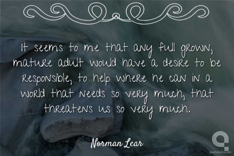 It seems to me that any full grown, mature adult would have a desire to be responsible, to help where he can in a world that needs so very much, that threatens us so very much. Norman Lear