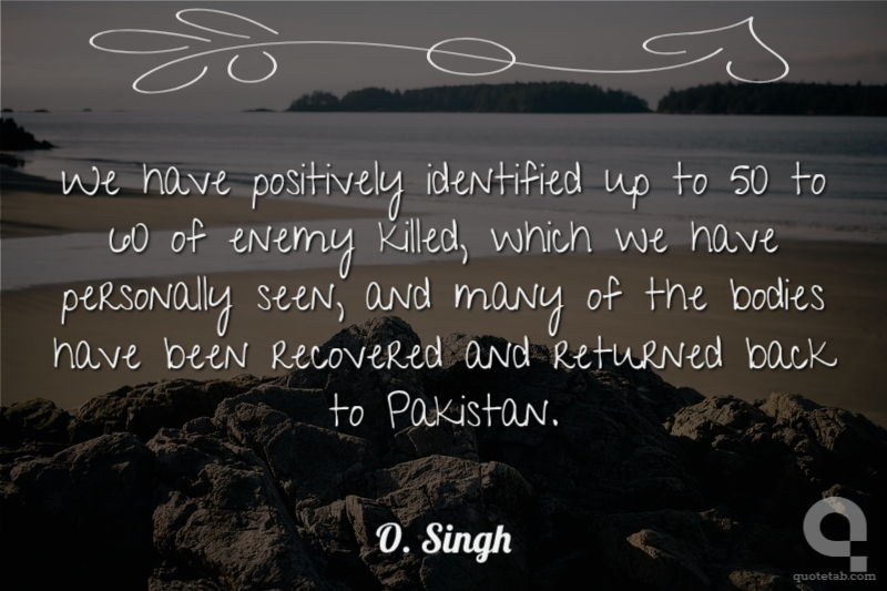 We have positively identified up to 50 to 60 of enemy killed, which we have personally seen, and many of the bodies have been recovered and returned back to Pakistan. O. Singh