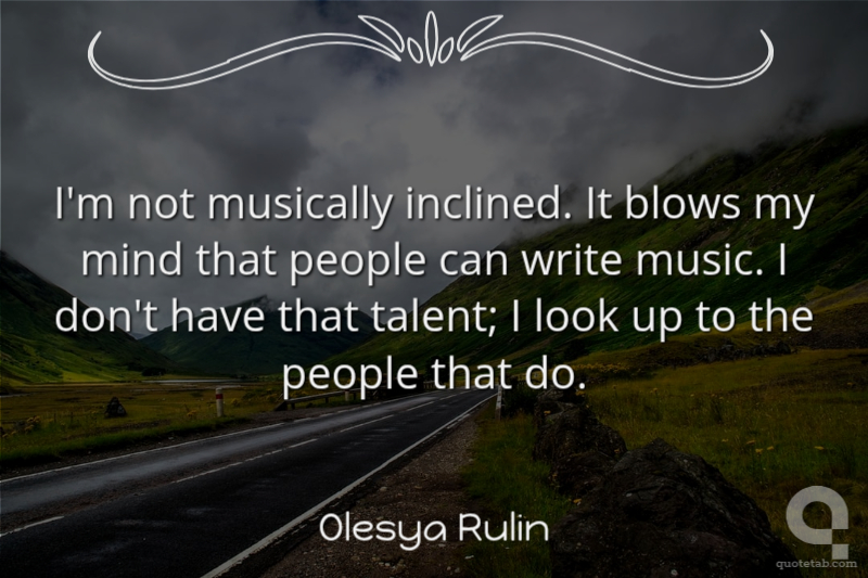 I'm not musically inclined. It blows my mind that people can write music. I don't have that talent; I look up to the people that do. Olesya Rulin