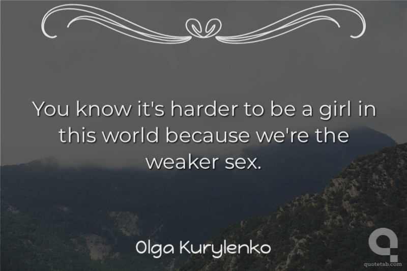 Olga Kurylenko You know it's harder to be a girl in this world because we're the weaker sex.