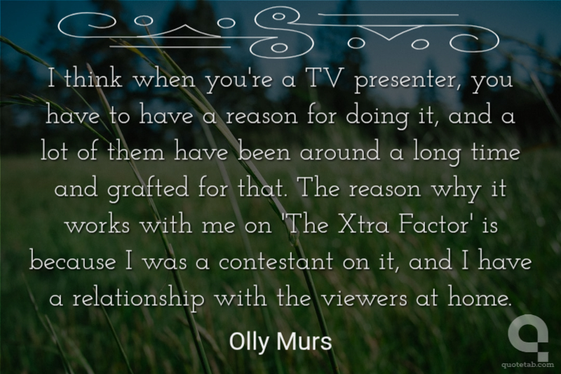 I think when you're a TV presenter, you have to have a reason for doing it, and a lot of them have been around a long time and grafted for that. The reason why it works with me on 'The Xtra Factor' is because I was a contestant on it, and I have a relationship with the viewers at home. Olly Murs
