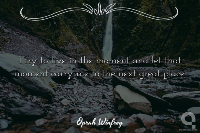 I try to live in the moment and let that moment carry me to the next great place. Oprah Winfrey