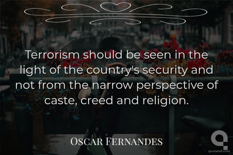 Terrorism should be seen in the light of the country's security and not from the narrow perspective of caste, creed and religion. Oscar Fernandes