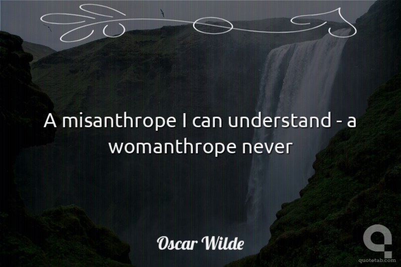 A misanthrope I can understand - a womanthrope never Oscar Wilde