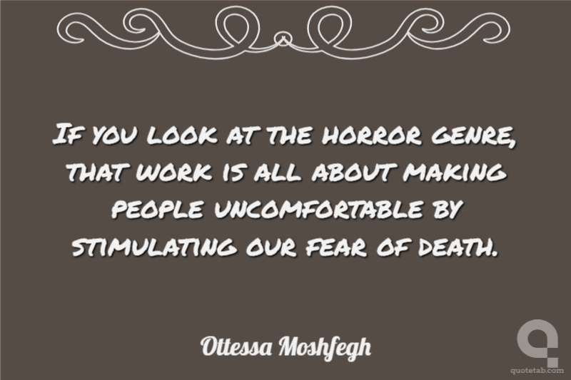 If you look at the horror genre, that work is all about making people uncomfortable by stimulating our fear of death. Ottessa Moshfegh