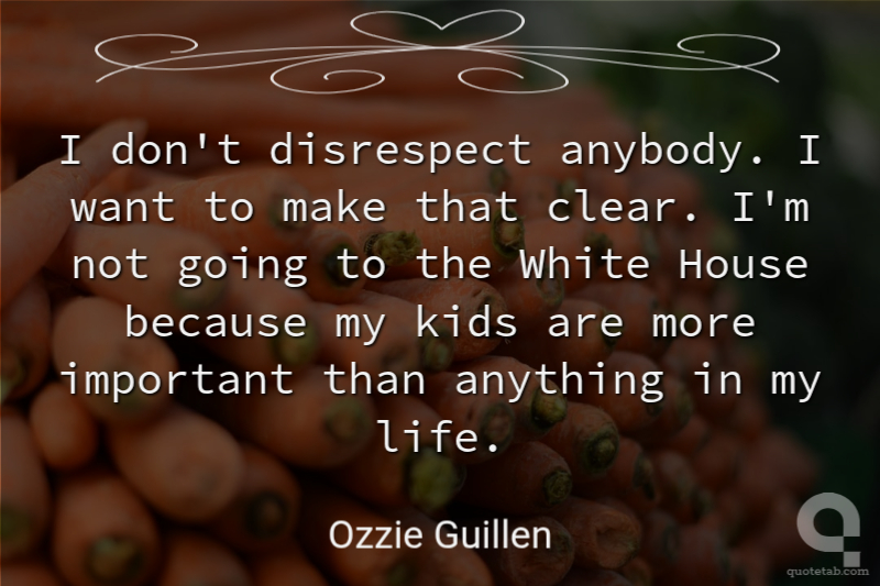 I don't disrespect anybody. I want to make that clear. I'm not going to the White House because my kids are more important than anything in my life. Ozzie Guillen
