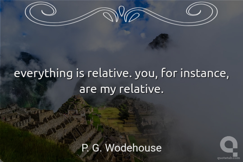 everything is relative. you, for instance, are my relative. P. G. Wodehouse