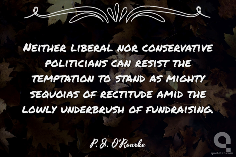 Neither liberal nor conservative politicians can resist the temptation to stand as mighty sequoias of rectitude amid the lowly underbrush of fundraising. P. J. O'Rourke