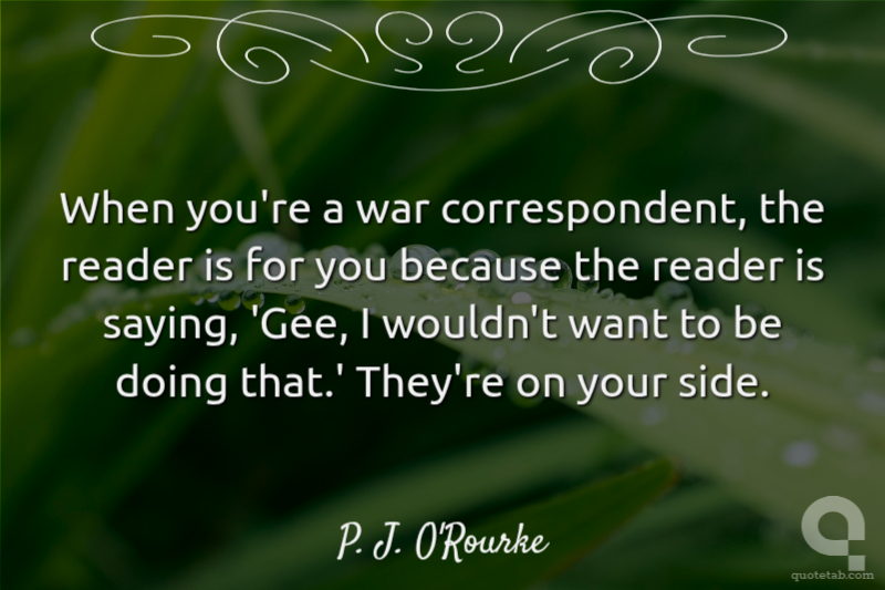 When you're a war correspondent, the reader is for you because the reader is saying, 'Gee, I wouldn't want to be doing that.' They're on your side. P. J. O'Rourke