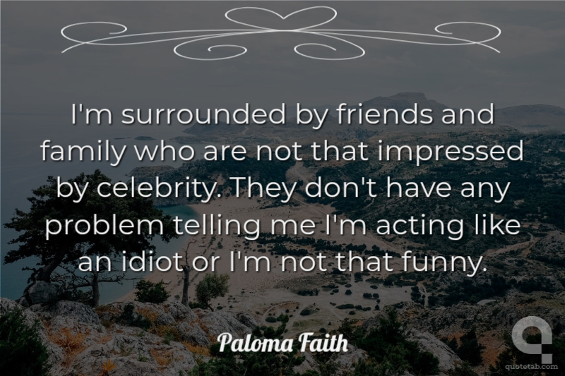 I'm surrounded by friends and family who are not that impressed by celebrity. They don't have any problem telling me I'm acting like an idiot or I'm not that funny. Paloma Faith