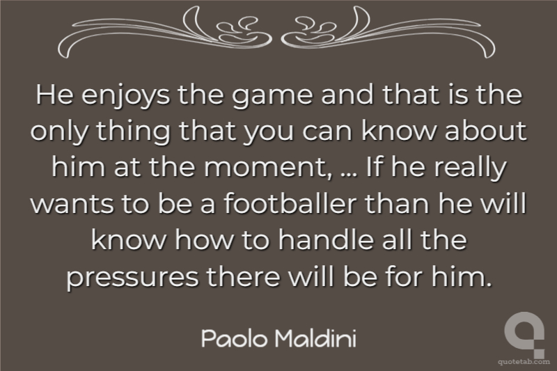 He enjoys the game and that is the only thing that you can know about him at the moment, ... If he really wants to be a footballer than he will know how to handle all the pressures there will be for him. Paolo Maldini