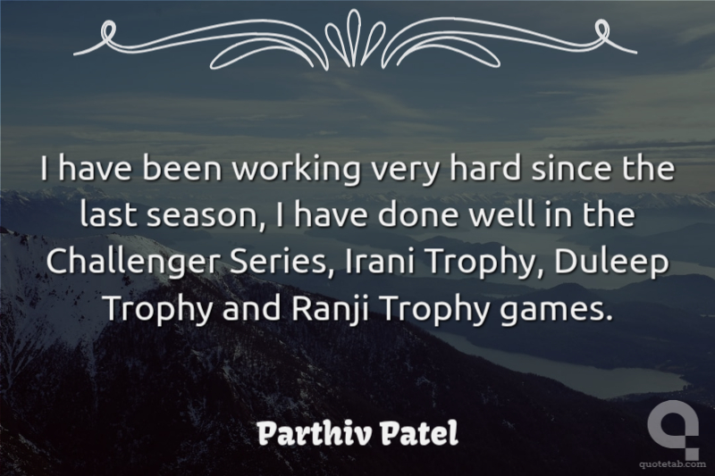 I have been working very hard since the last season, I have done well in the Challenger Series, Irani Trophy, Duleep Trophy and Ranji Trophy games. Parthiv Patel
