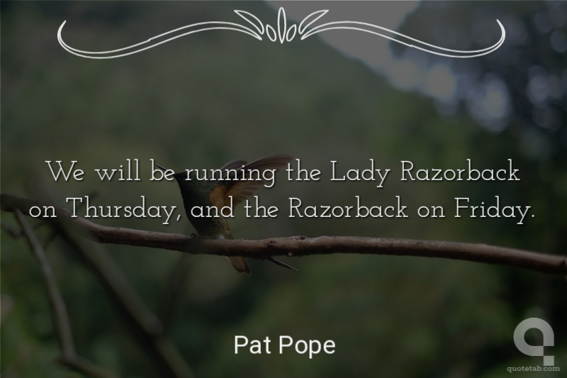 We will be running the Lady Razorback on Thursday, and the Razorback on Friday. Pat Pope
