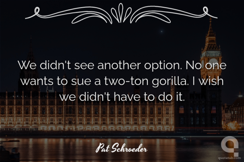 We didn't see another option. No one wants to sue a two-ton gorilla. I wish we didn't have to do it. Pat Schroeder