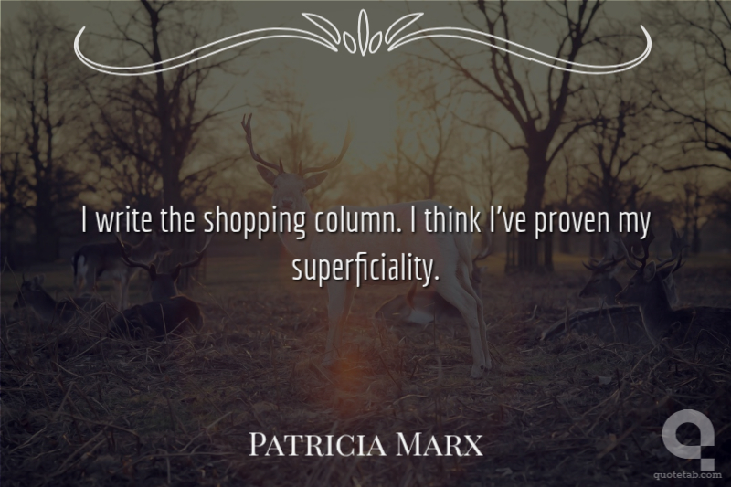 I write the shopping column. I think I've proven my superficiality. Patricia Marx