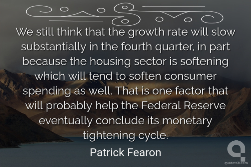 We still think that the growth rate will slow substantially in the fourth quarter, in part because the housing sector is softening which will tend to soften consumer spending as well. That is one factor that will probably help the Federal Reserve eventually conclude its monetary tightening cycle. Patrick Fearon