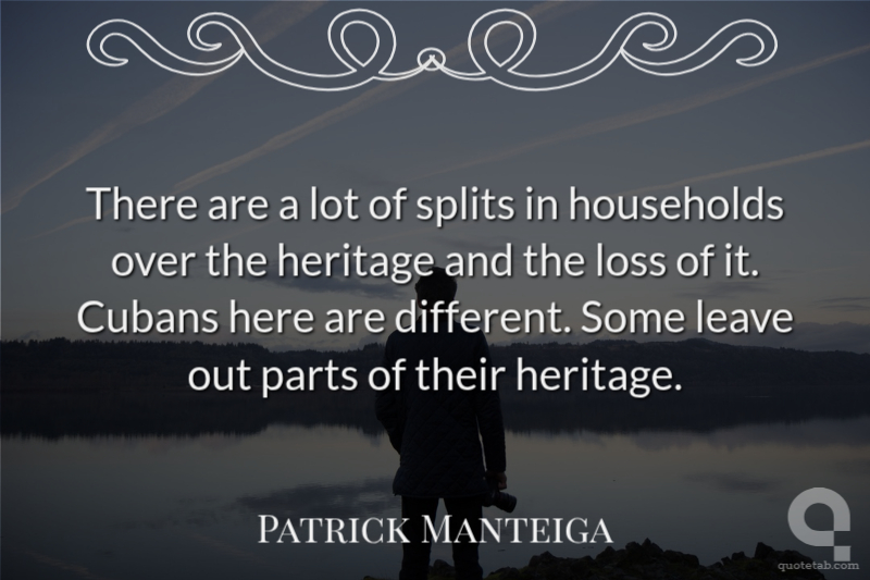 There are a lot of splits in households over the heritage and the loss of it. Cubans here are different. Some leave out parts of their heritage. Patrick Manteiga