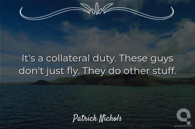 It's a collateral duty. These guys don't just fly. They do other stuff. Patrick Nichols