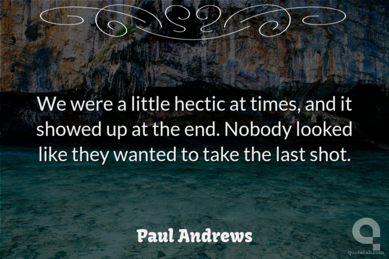 We were a little hectic at times, and it showed up at the end. Nobody looked like they wanted to take the last shot. Paul Andrews