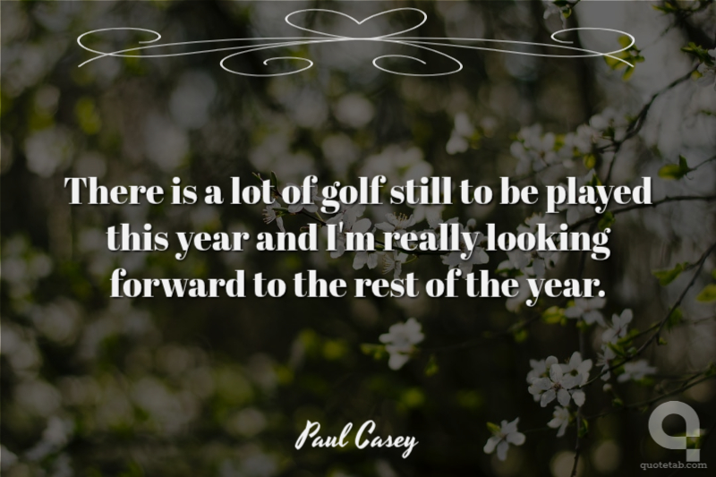 There is a lot of golf still to be played this year and I'm really looking forward to the rest of the year. Paul Casey