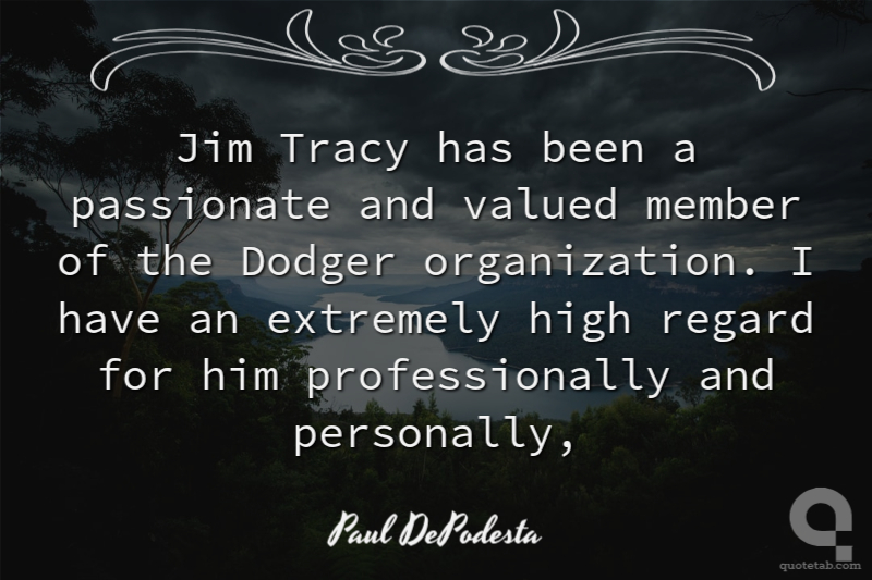 Jim Tracy has been a passionate and valued member of the Dodger organization. I have an extremely high regard for him professionally and personally, Paul DePodesta