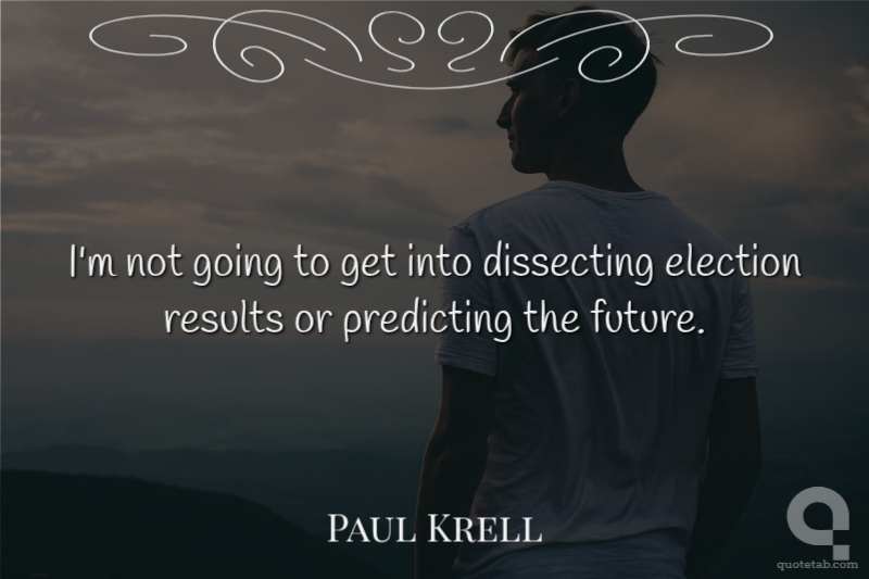 I'm not going to get into dissecting election results or predicting the future. Paul Krell
