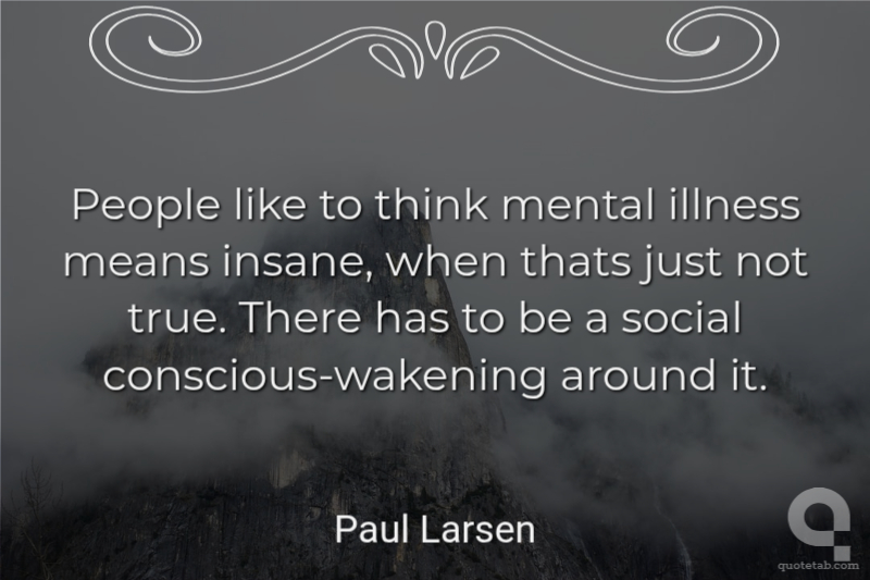 People like to think mental illness means insane, when thats just not true. There has to be a social conscious-wakening around it. Paul Larsen