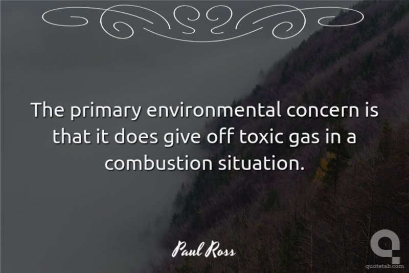 The primary environmental concern is that it does give off toxic gas in a combustion situation. Paul Ross