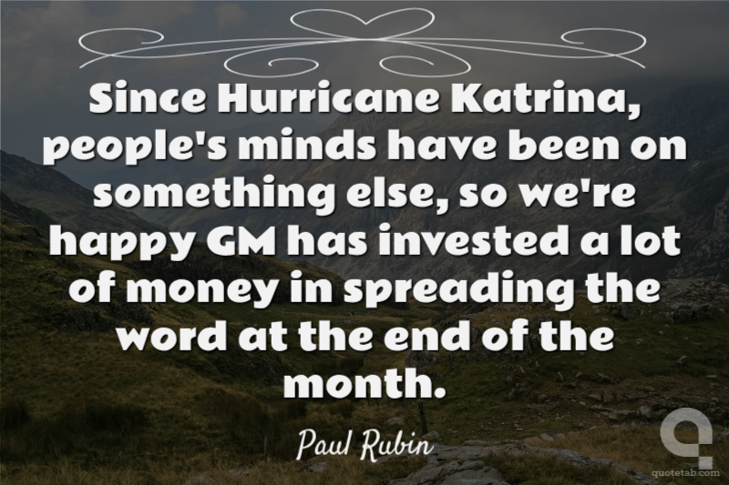 Since Hurricane Katrina, people's minds have been on something else, so we're happy GM has invested a lot of money in spreading the word at the end of the month. Paul Rubin