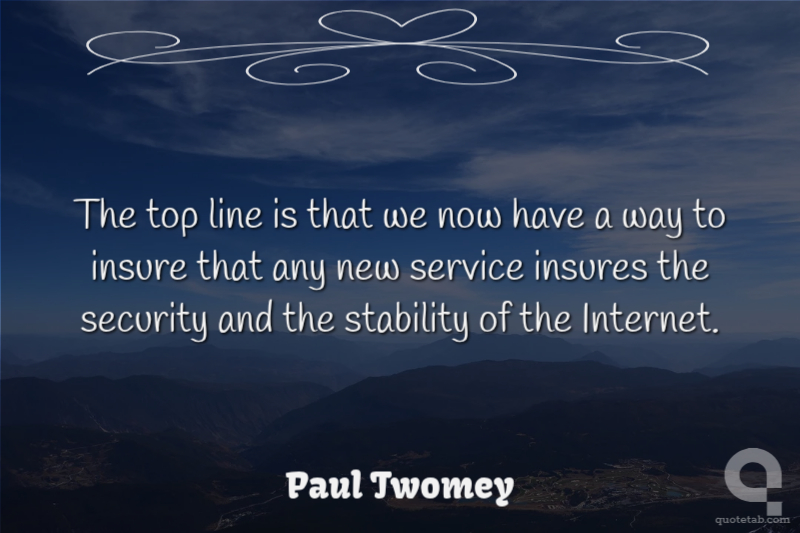 The top line is that we now have a way to insure that any new service insures the security and the stability of the Internet. Paul Twomey