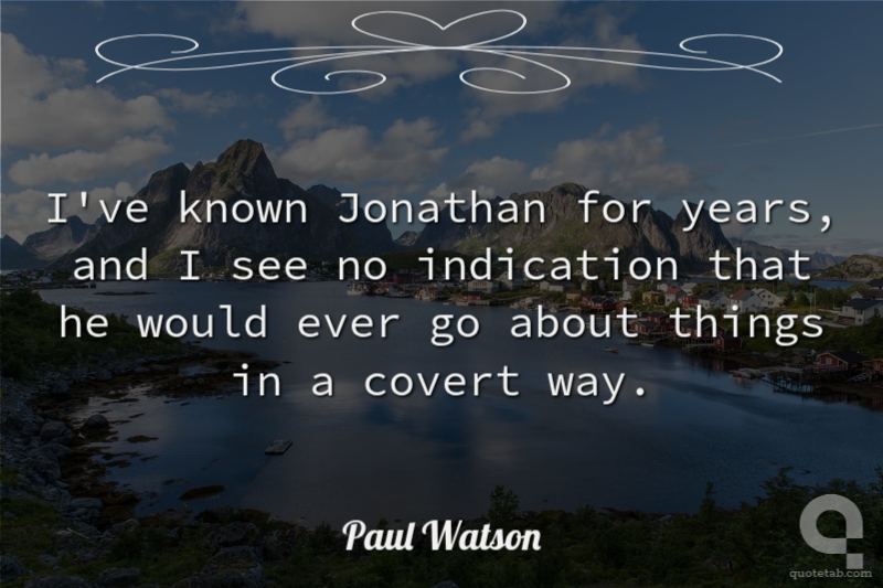 I've known Jonathan for years, and I see no indication that he would ever go about things in a covert way. Paul Watson