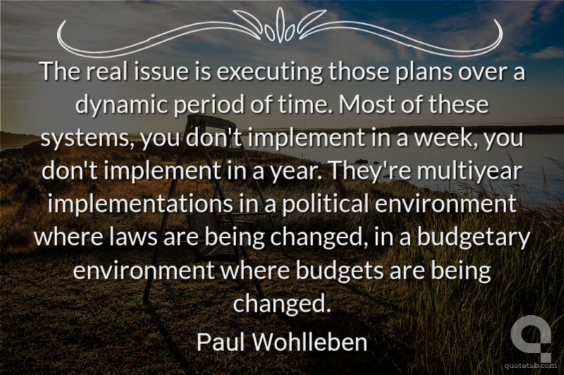The real issue is executing those plans over a dynamic period of time. Most of these systems, you don't implement in a week, you don't implement in a year. They're multiyear implementations in a political environment where laws are being changed, in a budgetary environment where budgets are being changed. Paul Wohlleben