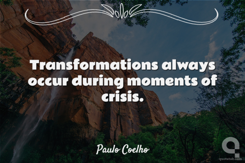 Transformations always occur during moments of crisis. Paulo Coelho