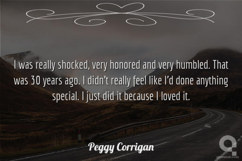 I was really shocked, very honored and very humbled. That was 30 years ago. I didn't really feel like I'd done anything special. I just did it because I loved it. Peggy Corrigan