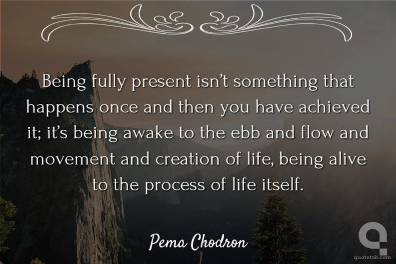 Being fully present isn’t something that happens once and then you have achieved it; it’s being awake to the ebb and flow and movement and creation of life, being alive to the process of life itself. Pema Chodron