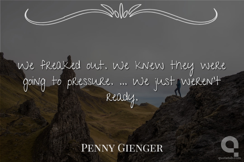 We freaked out. We knew they were going to pressure. ... We just weren't ready. Penny Gienger