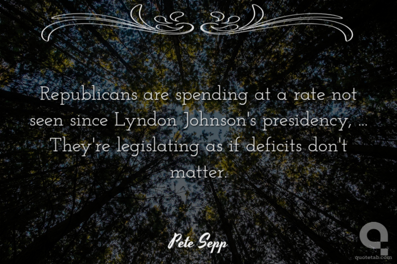 Republicans are spending at a rate not seen since Lyndon Johnson's presidency, ... They're legislating as if deficits don't matter. Pete Sepp