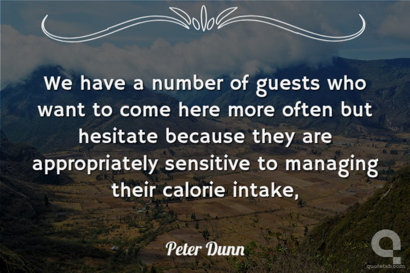 We have a number of guests who want to come here more often but hesitate because they are appropriately sensitive to managing their calorie intake, Peter Dunn