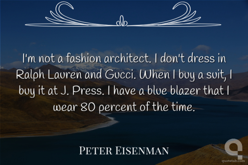 I'm not a fashion architect. I don't dress in Ralph Lauren and Gucci. When I buy a suit, I buy it at J. Press. I have a blue blazer that I wear 80 percent of the time. Peter Eisenman