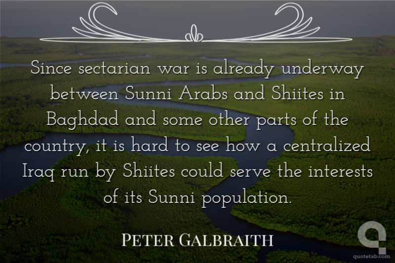 Since sectarian war is already underway between Sunni Arabs and Shiites in Baghdad and some other parts of the country, it is hard to see how a centralized Iraq run by Shiites could serve the interests of its Sunni population. Peter Galbraith