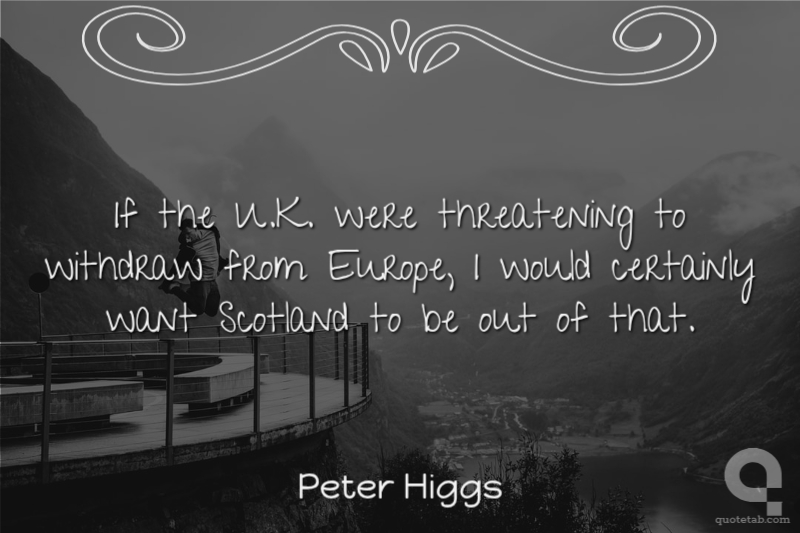 Peter Higgs If the U.K. were threatening to withdraw from Europe, I would certainly want Scotland to be out of that.