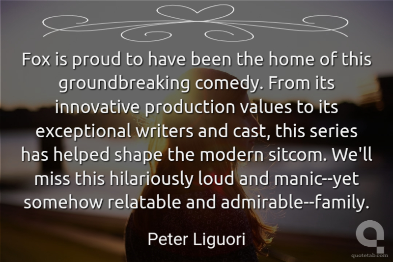 Fox is proud to have been the home of this groundbreaking comedy. From its innovative production values to its exceptional writers and cast, this series has helped shape the modern sitcom. We'll miss this hilariously loud and manic--yet somehow relatable and admirable--family. Peter Liguori