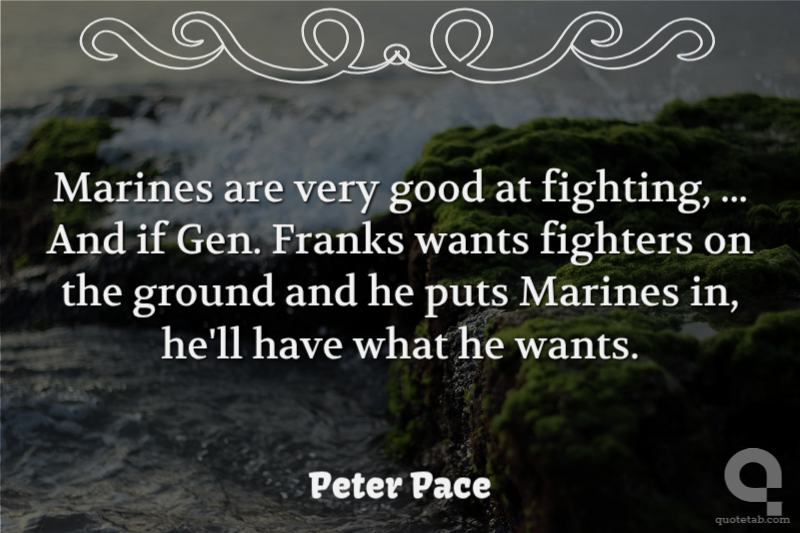Marines are very good at fighting, ... And if Gen. Franks wants fighters on the ground and he puts Marines in, he'll have what he wants. Peter Pace