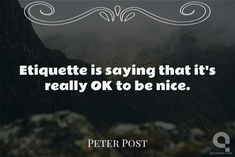 Etiquette is saying that it's really OK to be nice. Peter Post