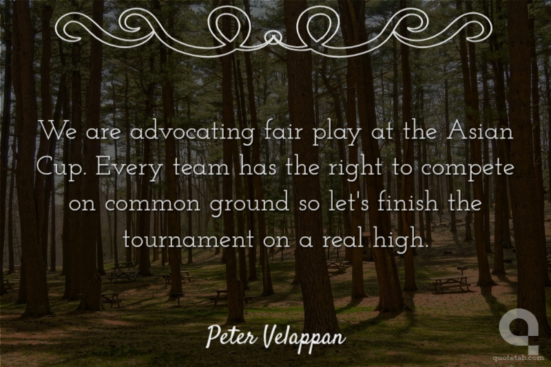 We are advocating fair play at the Asian Cup. Every team has the right to compete on common ground so let's finish the tournament on a real high. Peter Velappan