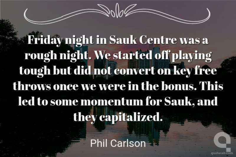 Friday night in Sauk Centre was a rough night. We started off playing tough but did not convert on key free throws once we were in the bonus. This led to some momentum for Sauk, and they capitalized. Phil Carlson