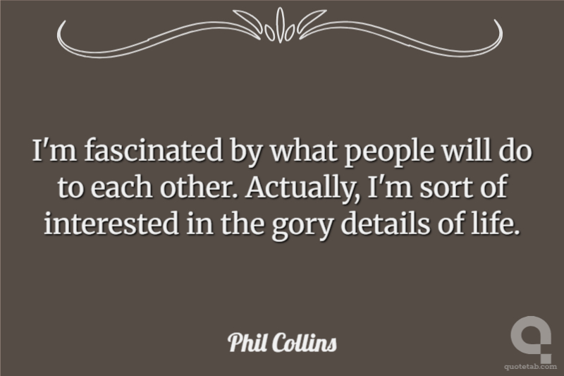 I'm fascinated by what people will do to each other. Actually, I'm sort of interested in the gory details of life. Phil Collins