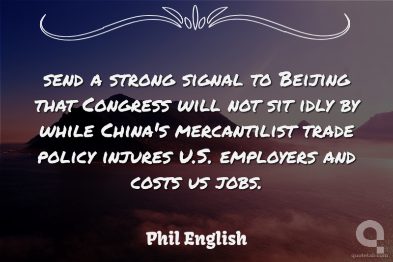 send a strong signal to Beijing that Congress will not sit idly by while China's mercantilist trade policy injures U.S. employers and costs us jobs. Phil English