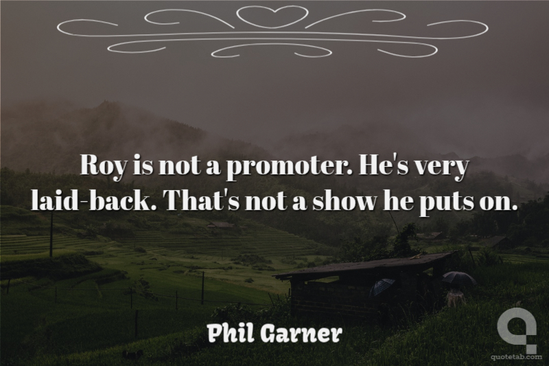 Roy is not a promoter. He's very laid-back. That's not a show he puts on. Phil Garner